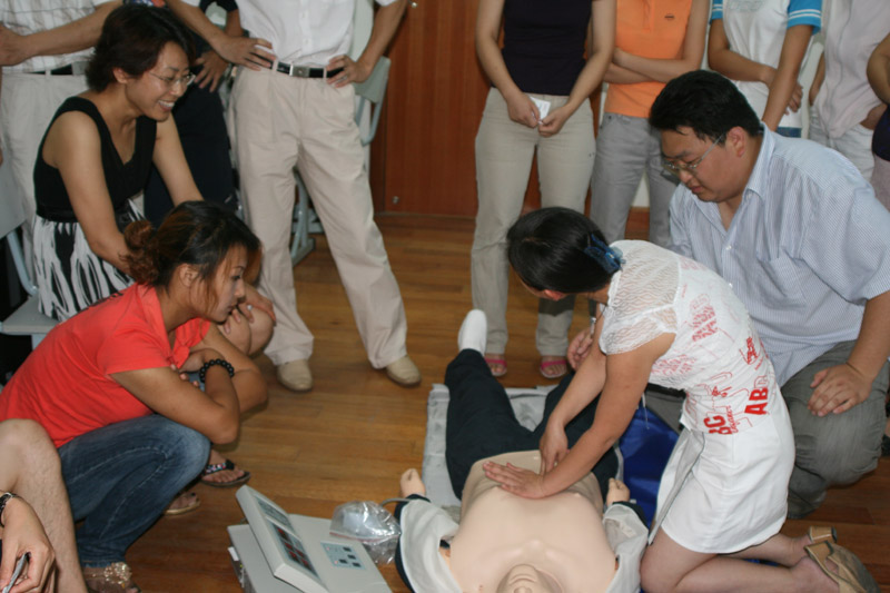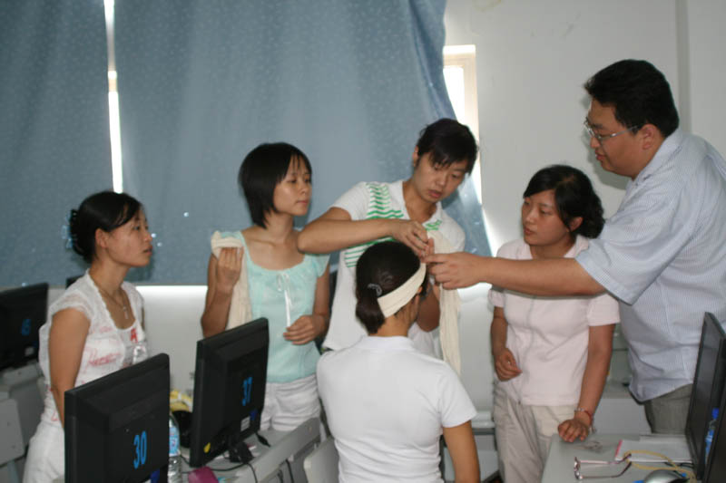 2007年7月31日金山区红十字会李�等三位老师冒着炎热的酷暑,来我校为化工科暑期培训班教师进行“QHS紧急救援模块”进行技能操作培训。李�老师以扎实知识功底和娴熟的操作技能为我们现场急救的基础知识,并进行了止血、包扎、骨折固定与搬运技术的培训及心肺复苏急救操作的培训。通过正规化的培训,老师们收益匪浅,能正确掌握现场急救技能的操作要领。