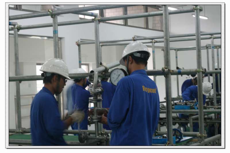该公司33名学员分两批培训,每批为期五天。培训内容分五个培训模块,包括HSE模块(讲授化工生产过程中的健康“H”、安全“S”、环保“E”)、传热模块(讲授传热理论知识)、化工仪表模块(现场讲授仪表理论知识,并操作)、管路安装模块(讲授管道、管件、阀门的种类、结构和特点,进行简单管路的安装)以及泵操作模块(讲授泵的种类、特点,典型泵的结构、工作原理,进行泵的基本操作与维护)。