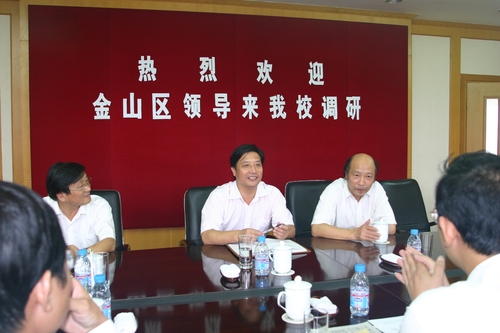 陪同来校的文化局局长刘杰、金山教育局领导薛毓良先后就学校承担农运会开幕式的工作与校领导进行了沟通。