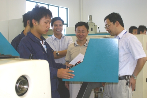 学校领导苏勇、姚松芳、林国新等陪同考察团一行参观了学校的综合实训基地。在数控实训中心,化工仿真实训室、德固赛精馏等实训室,高颂山副市长一行饶有兴趣地与学生进行交流,并不时向陪同的校领导询问有关情况。