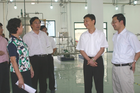 校长苏勇陪同赵区长参观了我校校园、实训中心,介绍了我校的发展状况,实训中心建设情况,存在的机遇、困难以及今后一阶段的发展目标,并表达了将我校化学工艺实训中心创建成世界一流、亚洲第一实训中心的决心和信心。