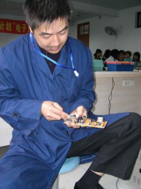 我校学生多,技能实训的工作量大,如何节省有限的资源一直是校领导关心的问题,在学校历年的工作要点中,多次强调要创建节约型校园。在日常的实习教学中,机电科的实训教师积极响应学校的号召,不仅注意节省每一度电,每一滴水,而且也在一直积极探索节约成本的方法和途径。他们看到学生实训作品中的集成块如果不回收利用,将造成资源白白浪费,于是有了变废为宝,重复利用的想法。机电科朱红权、盛雅明、王跃华、陈文博、曹律老师参与了此次活动。