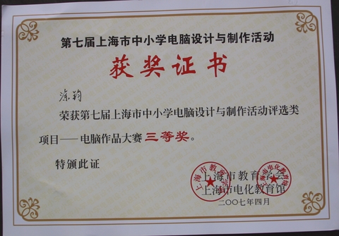 “第七届上海市中小学电脑设计与制作活动”获奖名单