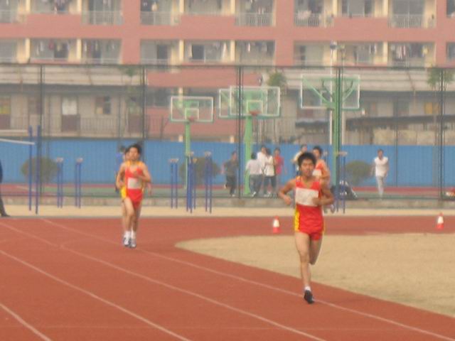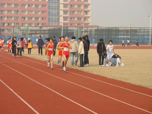本届长跑比赛共有35支队伍、大约200名运动员参加,竞争非常激烈。我校长跑运动员身穿红色运动服,在比赛赛场刮起了一股红色旋风。