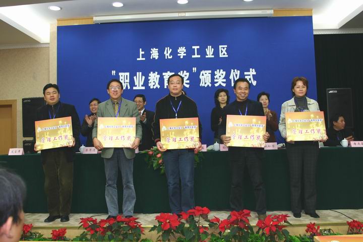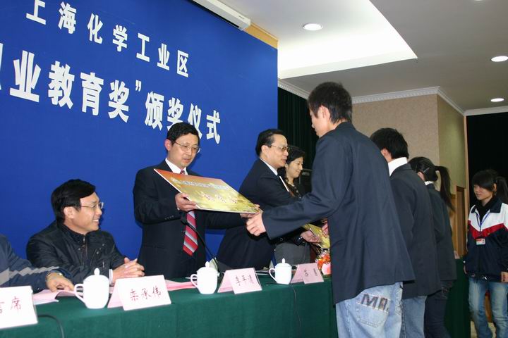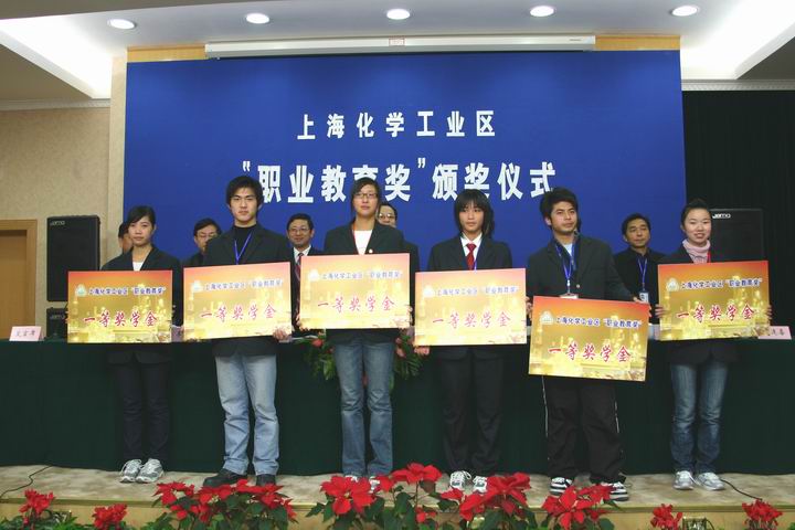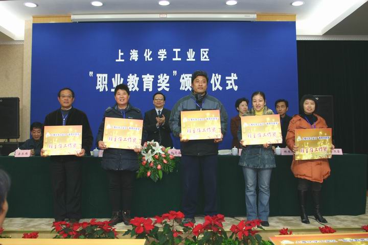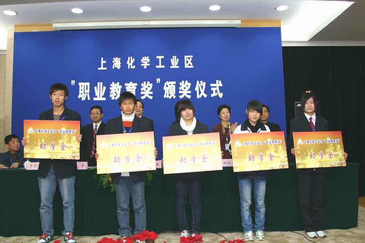 上海化学工业区“职业教育奖”已经连续进行三年,该奖项系上海化学工业区在我校设立的专门奖项,旨在对在学校的教育教学及教科研等方面做出创新贡献的优秀教师和品学兼优的学生进行奖励,同时对品学兼优的贫困学生提供助学金。在2005、2006年度,已有20个集体、28个先进个人获得“上海化学工业区职业教育创新奖”,有697个同学获得上海化学工业区奖学金和助学金。