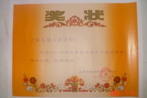 年度各项卫生工作。经上海市教委职教红十字会对我校一年来卫生工作考核,荣获“
