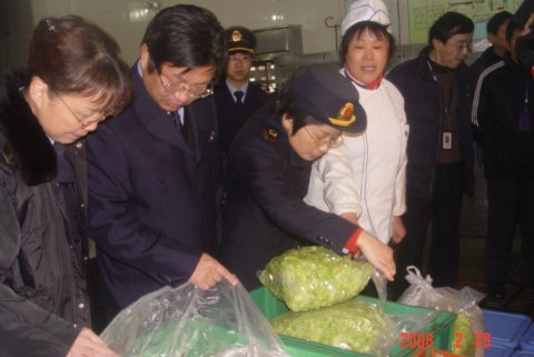 2月26日下午,金山区卫生局金局长亲自带领食品药品卫生监督所一行5人对我校食堂进行食品卫生检查。学校总务处王平主任、张秀芳书记、博海餐饮公司领导陪同检查。
