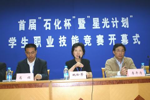 在隆重热烈的气氛中,党委书记姚松芳宣布上海石化工业学校第一届“石化杯”暨星光计划学生职业技能竞赛开幕。