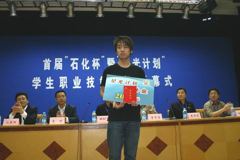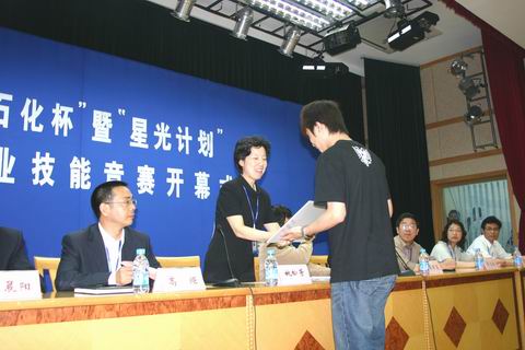 为了对广大参赛学生给予精神上的激励,开幕式上首先对获得2007年度上海市“星光计划”优秀学生源恺奖学金的学生进行表彰,041数控(1)班的鲁彪等23名学生走上主席台接受校领导颁发的奖金和证书。鲁彪同学是上海市第二届“星光计划”车工竞赛全能一等奖获得者,目前已进入企业实习,他在发言中表示,荣誉只能代表过去,要把它当作新的起点,摆正心态,继续努力。为自己创造美好的未来;同时,他希望学弟学妹们发扬奥运精神。在竞赛中取得优良成绩。