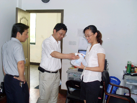 近日气温“高烧”不退,烈日炎炎,虽然是暑假期间,但学校很多岗位上都有教职工们忙碌的身影,有的对企业员工进行培训,有的利用暑假进行课程改革调研,也有的在对学校的基础设施进行维修、改造,为下学期各项工作的顺利开展,作开学前的充分准备。这些教职工放弃了暑假休息时间,克服了各种困难,付出了辛劳和汗水,他们的无私奉献、兢兢业业的品格充分体现了教职工的主人翁精神。苏勇校长、林国新副校长赴各个岗位进行慰问,将一条条毛巾递给这些教职员工,并不时嘱咐他们注意劳逸结合,不要由于工作而“中暑”了,同时也对他们为学校的发展所作的贡献表示感谢。