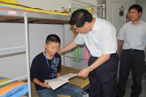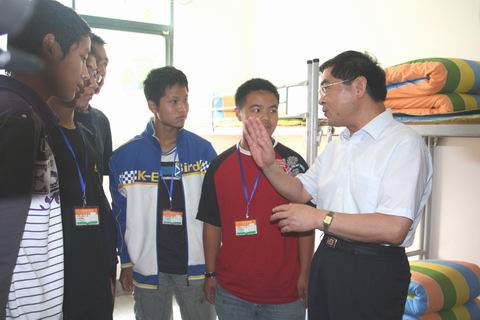 走出教室,吴书记一行还来到学生宿舍,仔细查看了同学们的生活设施、生活用品,询问了同学们的生活情况,他还嘱咐在场的宿舍