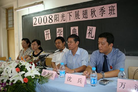 开学典礼由工业学校培训中心余海燕主任主持。开学典礼上,市慈善基金会有关部门领导徐本亮主任讲了开办阳光班的意义和宗旨,介绍了阳光班目前的发展状况。金山区团委李芳书记、检察院未成人检查科沈兵科长对学生们的成才寄予了殷切的期望。校机电科孙曙光科长对机电应用专业作了详细地介绍。学生代表表示要认真学习,遵守纪律,完成学业报答社会对他们的关怀。