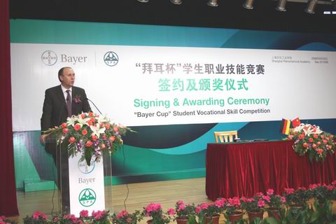 上海石化工业学校校长苏勇向出席仪式的嘉宾表示热烈欢迎,并向拜耳公司多年来给予我校的大力支持表示衷心的感谢。他说,这次双方联合举办“拜耳杯”学生职业技能竞赛是在新的形势下,校企双方开展的一种新的和更高层次上的合作办学,能够极大激发学生参与技能培训,提高个人的职业技能水平的热情,同时也为学校参与市教委组织的“星光计划”职业技能大赛打下良好的基础。