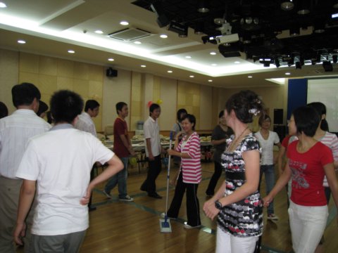 联欢活动在青年教师朱昕玮的一首《没有共产党就没有新中国》中拉开了序幕。在做了简单的介绍后,我们的联欢活动就正式开始了。在《祝你好运》、《copy不走样》、《海盗船长》等游戏中,青年教师们增进了了解,拉近了距离,也让联欢会的气氛一波一波地达到高潮。