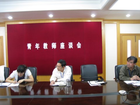 2008年10月15日,在学校办公楼四楼会议室召开了部分青年教师座谈会。苏勇校长和校办主任周金章老师参加了座谈会。座谈会由团委杜海燕老师主持。