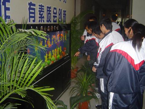 为培养学生安全、文明、礼貌的良好习惯,提升学生爱集体、爱公物、爱自然、爱美丽的思想境界,由机电科党支部宣传委员陈中老师,带领081级各班级选派的10名志愿者组成“养金鱼兴趣小组”,丰富学生课余活动,拓展学生的业余爱好和知识,培养生活情趣,适应学校将来的封闭式管理,并负责维护鱼缸和金鱼的日常事物。