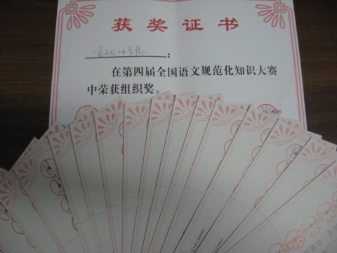 近日,从金山区语委获悉,在第四届全国语言文字规范化知识大赛――“爱我母语,爱我中华”读书教育活动中,我校师生成绩斐然,陈军、闵晓红等四位教师获得教师组优胜奖,张泉、孙佳林等十三位同学获得中学组优胜奖,除此之外,我校还获得了语言文字规范化大赛组织奖。