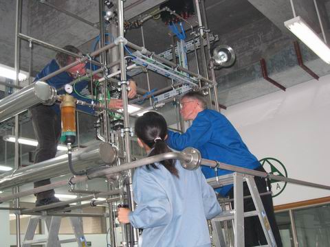 自2005年赢创(德固赛)公司决定与我校进行职业培训合作开始,赢创集团德国马尔培训部就一直对赢创(德固赛)实训基地的建设给予了许多关心,不仅为基地提供了大量实训设施和模型,而且为了保证装置的安装质量,2006年8月初由Metternich博士、Kappe先生以及他们的2位同事带领11位培训部的学员来校进行全部设备的安装和对教师的培训工作,而到月底设备全部安装、调试到位,期间,Metternich博士还利用晚上休息时间为我校感兴趣的职教资料进行了德-英翻译。此后,Metternich博士还与Kappe先生多次到校对装置进行了维护,并一直及时地为我校邮寄装置的易耗部件,对保证装置长期良好的运行作出了贡献,这些工作为促进我校今年5月升格为赢创中国化工实训基地奠定了基础。