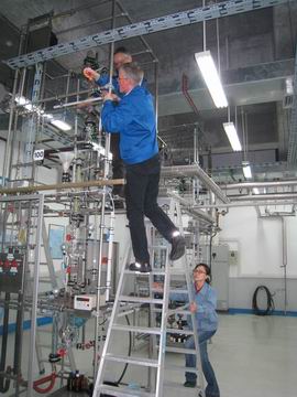 11月6日上午,赢创集团德国马尔自然科学培训主任培训部主任Metternich博士和培训专家Kappe先生来到了拜耳实训基地,对赢创(德固赛)公司资助我校的4套精馏实训装置进行维护。