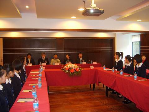 2007年,根据上海市产业发展对高技能人才的需求,我校与上海外滩茂悦大酒店、上海金茂君悦大酒店在2007级《饭店服务与管理专业》试点开设校企合作定向班,通过产学结合、定向培养的方式,构建院校与企业之间高技能人才的培养平台。今天的开学典礼由徐春蓉主持,首先,上海市旅游人才交流中心总经理倪美芬女士讲话,就旅游行业所需人才应具备的综合素质向各位同学提出要求:踏实做人、认真做事,同时她还简单介绍了定向班的教学形式和考核目标,希望同学们以校企合作为契机,做好熟悉专业理论知识和技能与了解企业文化相结合,通过考察、交流和测评,体验星级宾馆营造的氛围和团队精神,培养良好的职业素养,为成为企业优秀的员工做好充分的准备。