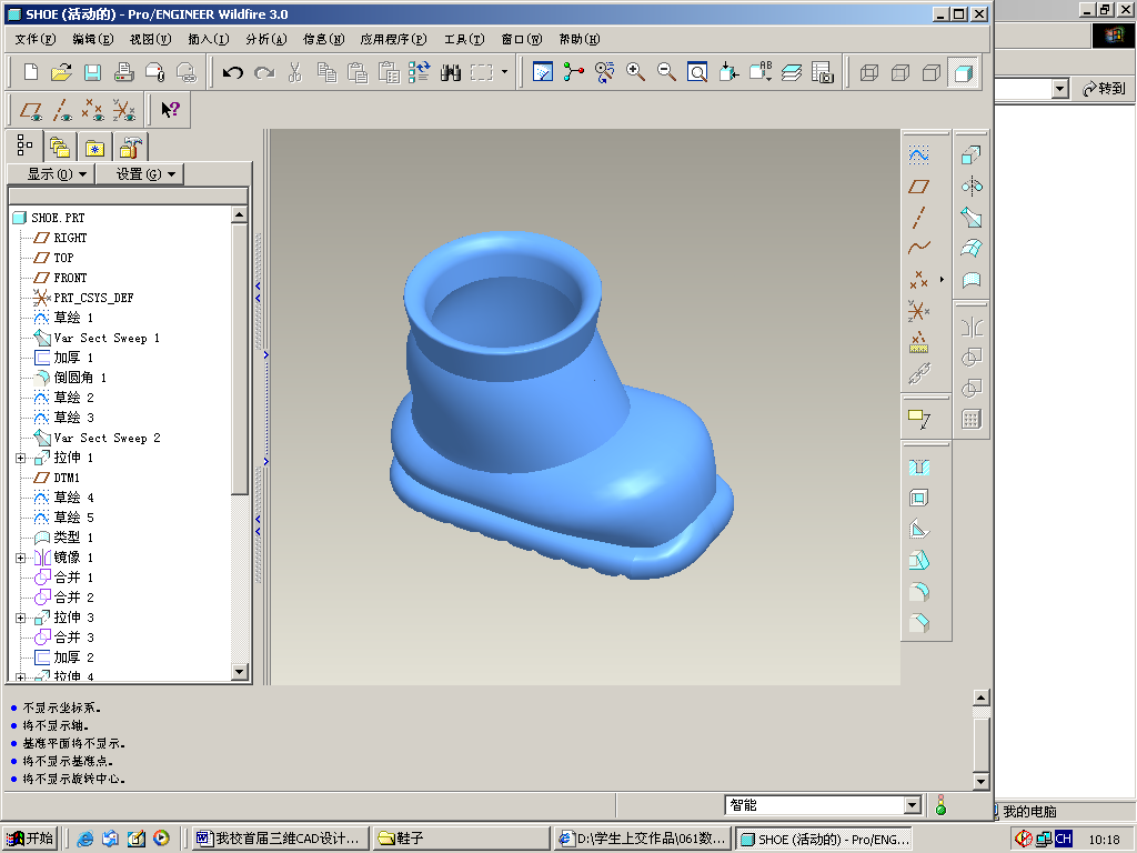 可乐瓶(PROE) 061数控4吴佳骏 世纪之鞋(PROE) 071数控2吴嘉莉