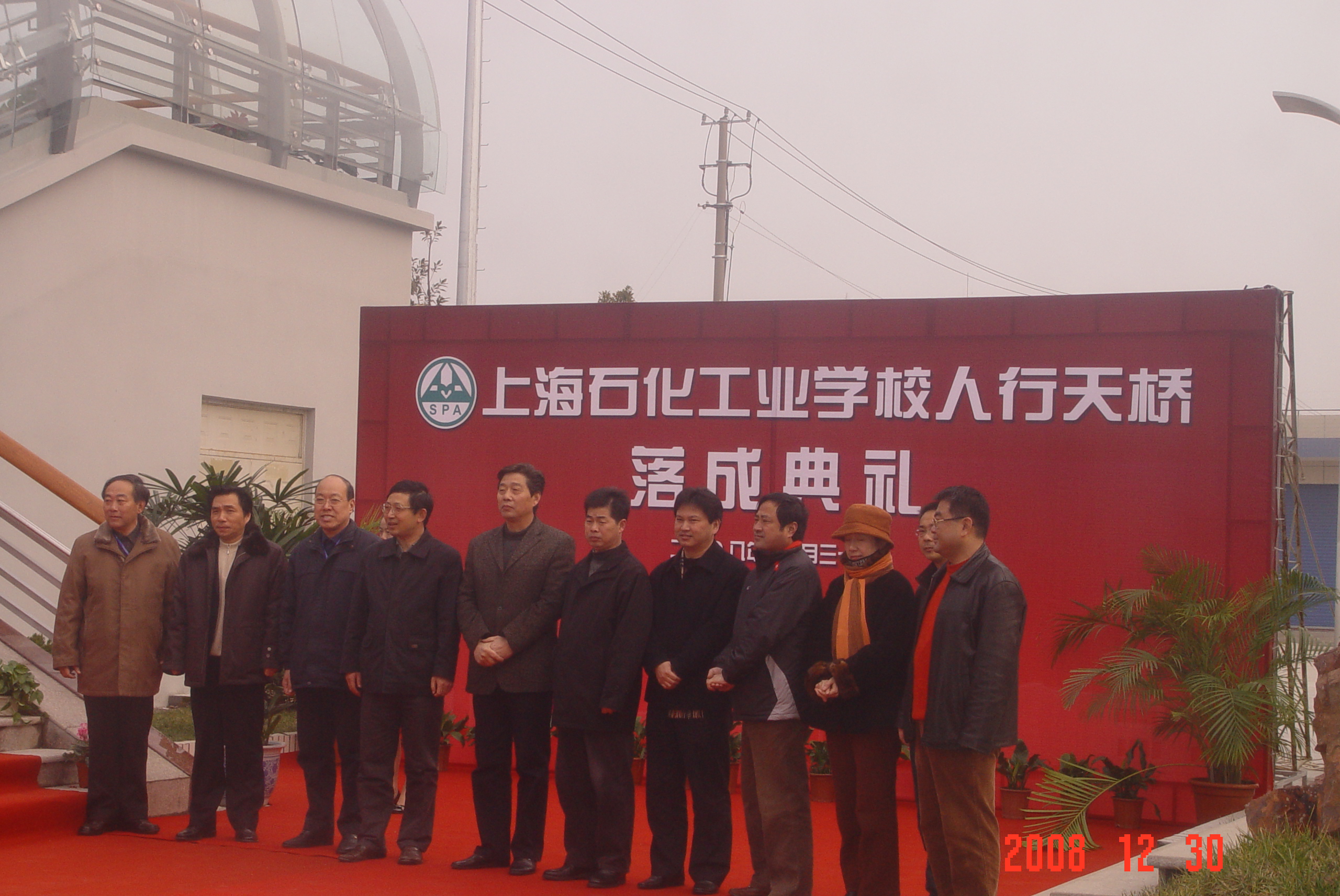 12月30日上午,上海石化工业学校人行天桥正式落成,苏勇校长在落成典礼上致词。金山区人大主任金达华同志、财政局副局长庄宝龙同志、建交委高强同志、教育局基建管理站鲍建强同志及学校领导出席了落成典礼。