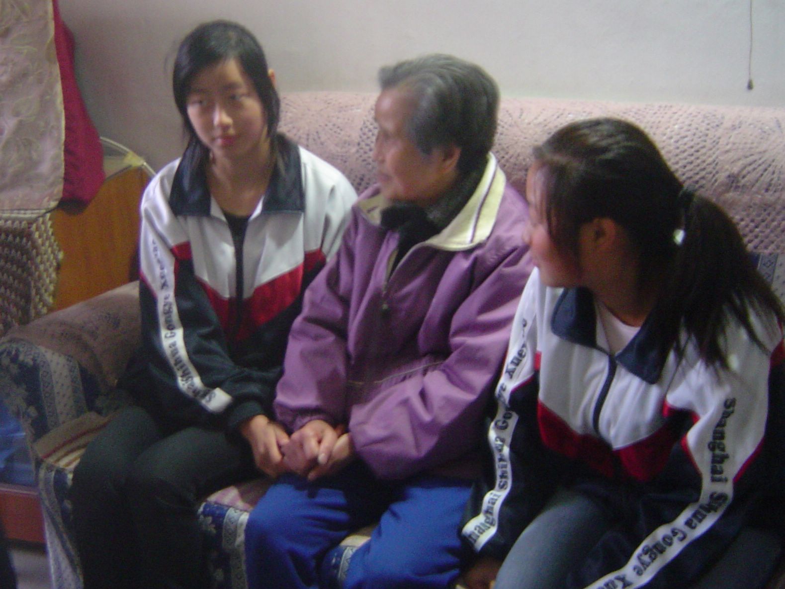 当天下午,三位学生代表在老师的带领下承载着全班同学的感恩之心冒雨前往高新老师的住处登门感谢。当我们踏进高老师家时看见的是一间普通的一室户的老房子,房子很小,没有装修、没有家具、热水器、也没有冰箱,家具都是用了几十年的老家具。在我们面前年近76岁高龄的高老师是那样的慈祥、可亲、朴素。在与高老师的家谈中,高老师对我们说:“孩子们,你们远离父母,自己要照顾好自己,现在你们最重要的就是学习。”高老师这句简单的话道出了她对我们的关心和期待。“我就像一根橡皮筋,能缩能伸,生活过得去就行,作为老师我追求的是精神生活而不是物资生活。”高老师说的这句话让我们感受到高老师无私的爱像天使班的纯洁和崇高。我们与高老师手握着手坐在一起,这时我们流下了泪水,这泪水包含我们对高老师无私的爱的感动和感激之情。
