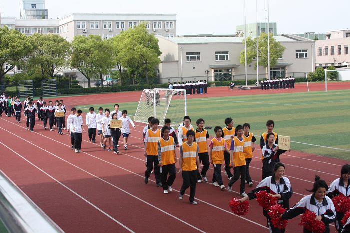 2009年4月23日下午,在学校北区操场隆重举行了第六届“学生会“杯迎世博足球联赛开幕式。校长助理高炬老师、学生处副主任迮育彪老师、学生处副主任黄黎明老师、团委副书记杜海燕老师出席了开幕式。开幕式由校学生会体育部金叶同学主持。