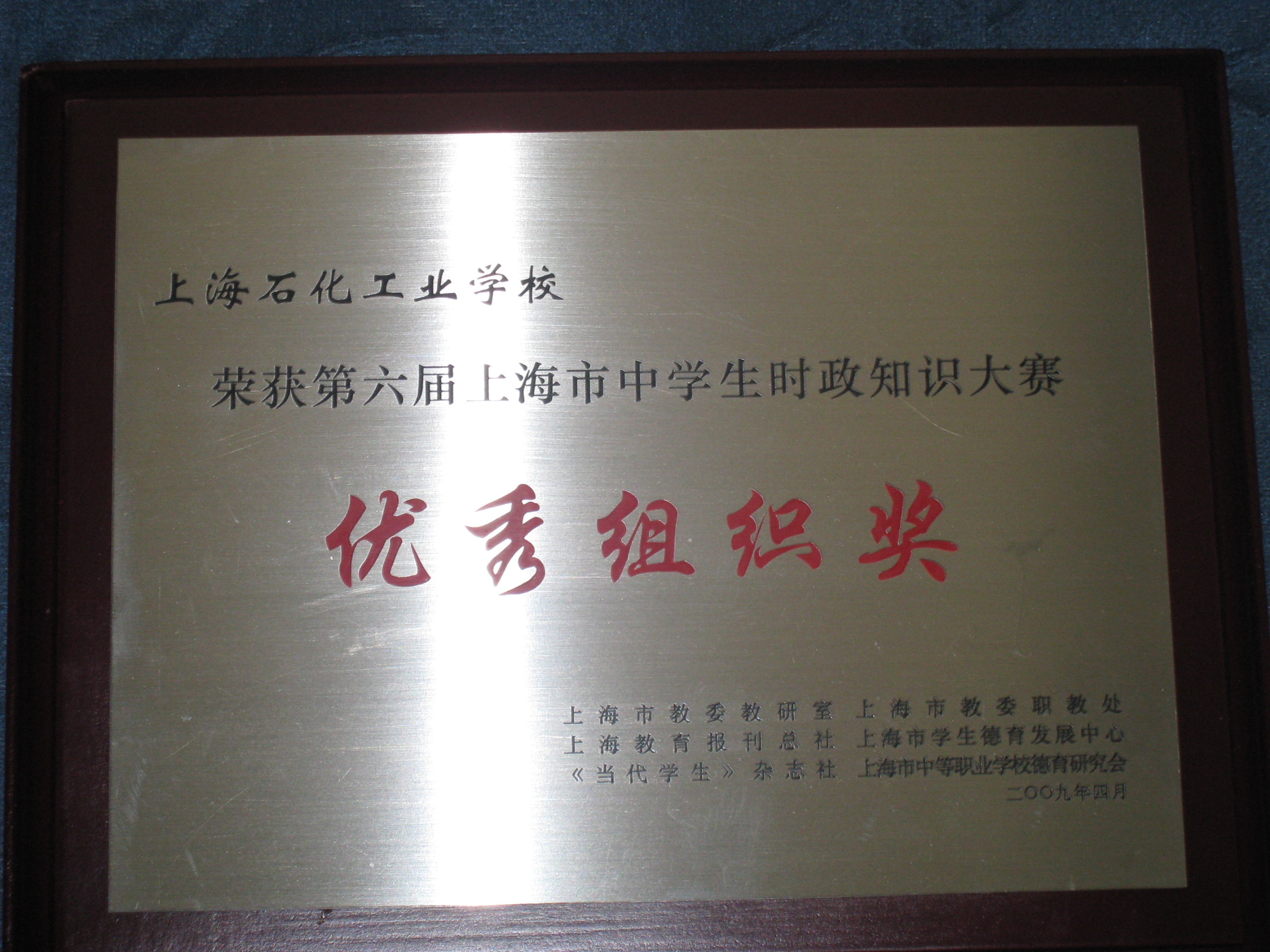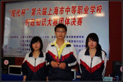 2009年4月25日(周六)上午,第六届上海市中学生时政知识大赛 “现代杯”中职组团体赛在上海市现代职校举行,在笔试中胜出的八所学校推选出成绩最优秀的学生进行最后的激烈角逐,参赛队强手如云,但我校代表队仍能力破重围,荣获银奖的好成绩。