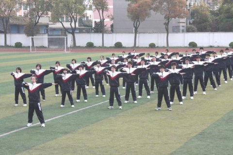 我校荣获上海市金山区第三届及2009年上海市金山区学生阳光体育大联赛第三套中小学生广播体操比赛高中组总团体一等奖、方队获二等奖的好成绩。