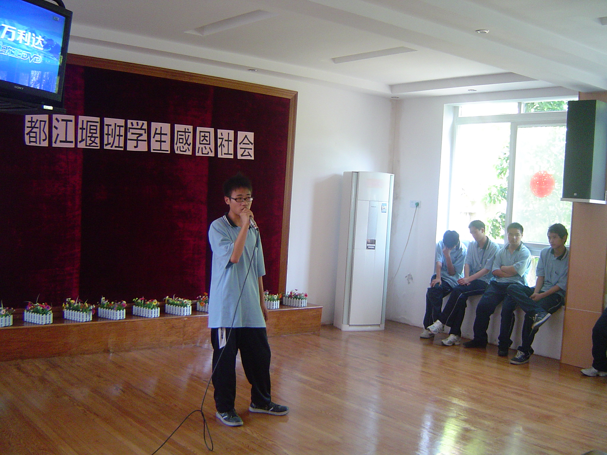 当郑鑫同学深情地演唱《感恩的心》时,把感恩回报活动推向了高潮,都江堰班的全体同学不约而同地走上台前齐声合唱。同学们的真情歌唱,台下所有人的真情拍手,现场氛围温暖又感人,整个活动大厅充满了和谐社会,美好人生的真切旋律。