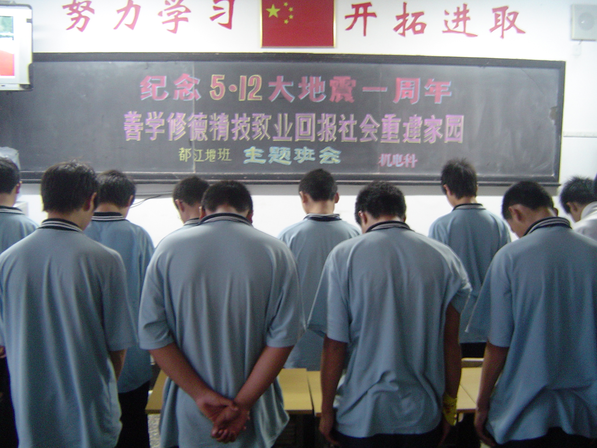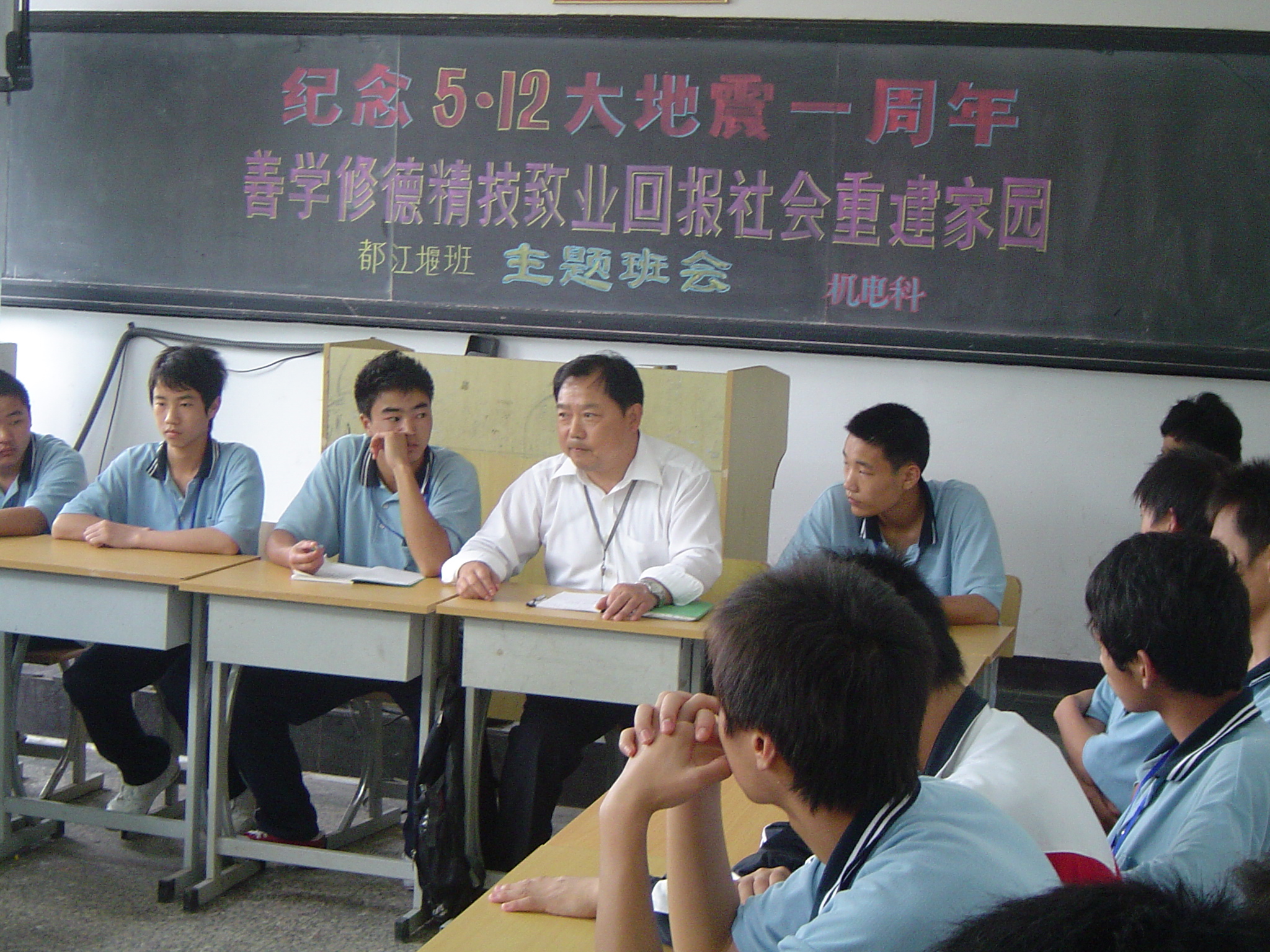 老师们、同学们纷纷发言:“活着的人要好好的活着,生者的幸福是对逝者的最大告慰,好好学习,掌握技能,重建家园是对都江堰的最大贡献。”