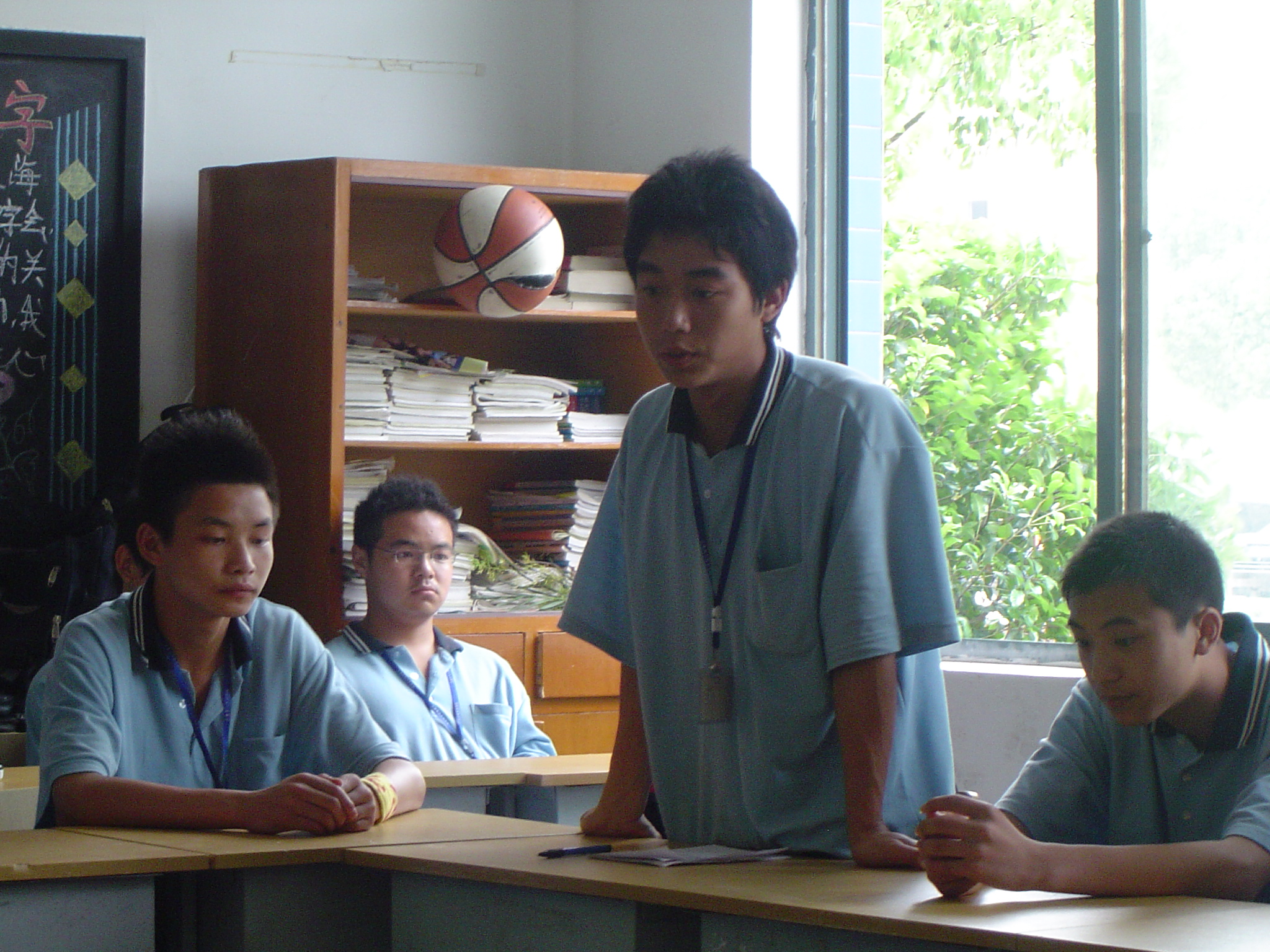 孙书记希望同学们“在倾诉中解脱,在忘记中铭记”。这简单的一句话说出了太多的鼓励与期望。当孙书记刚说完,班长徐洪森代表全体同学说道:“同学们!5.12是我们心中的永远的痛苦,但它也是我们现在前进的最大动力。我们现在最重要的就是把握好现在的良好的机遇,努力学习,把职业技能掌握得扎实,这样才能回报社会,建设家园,大家有没有信心!”同学们异口同声大声叫道“有!”,学生坚定的信心与坚强的勇气的盈满整个教室氛围。