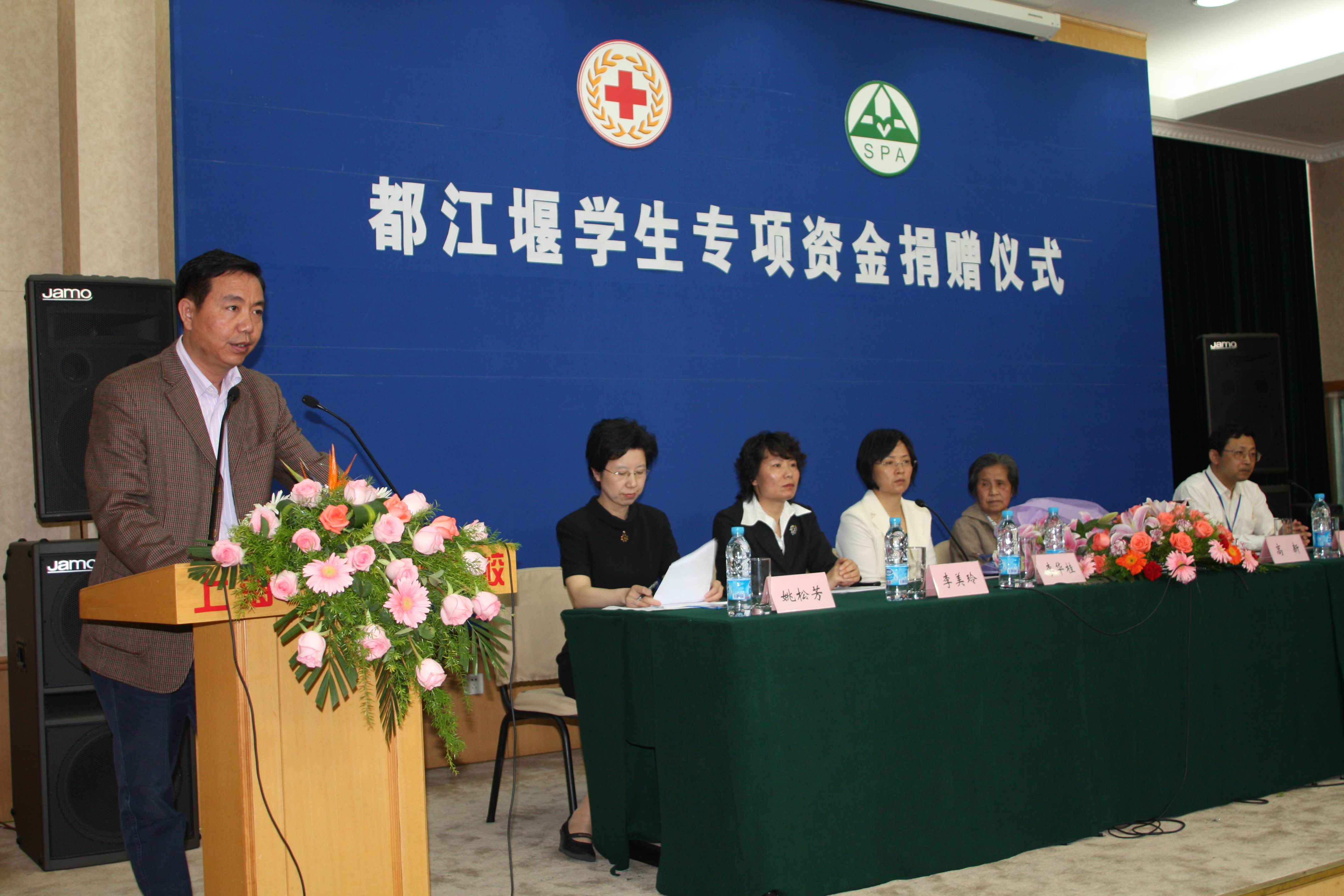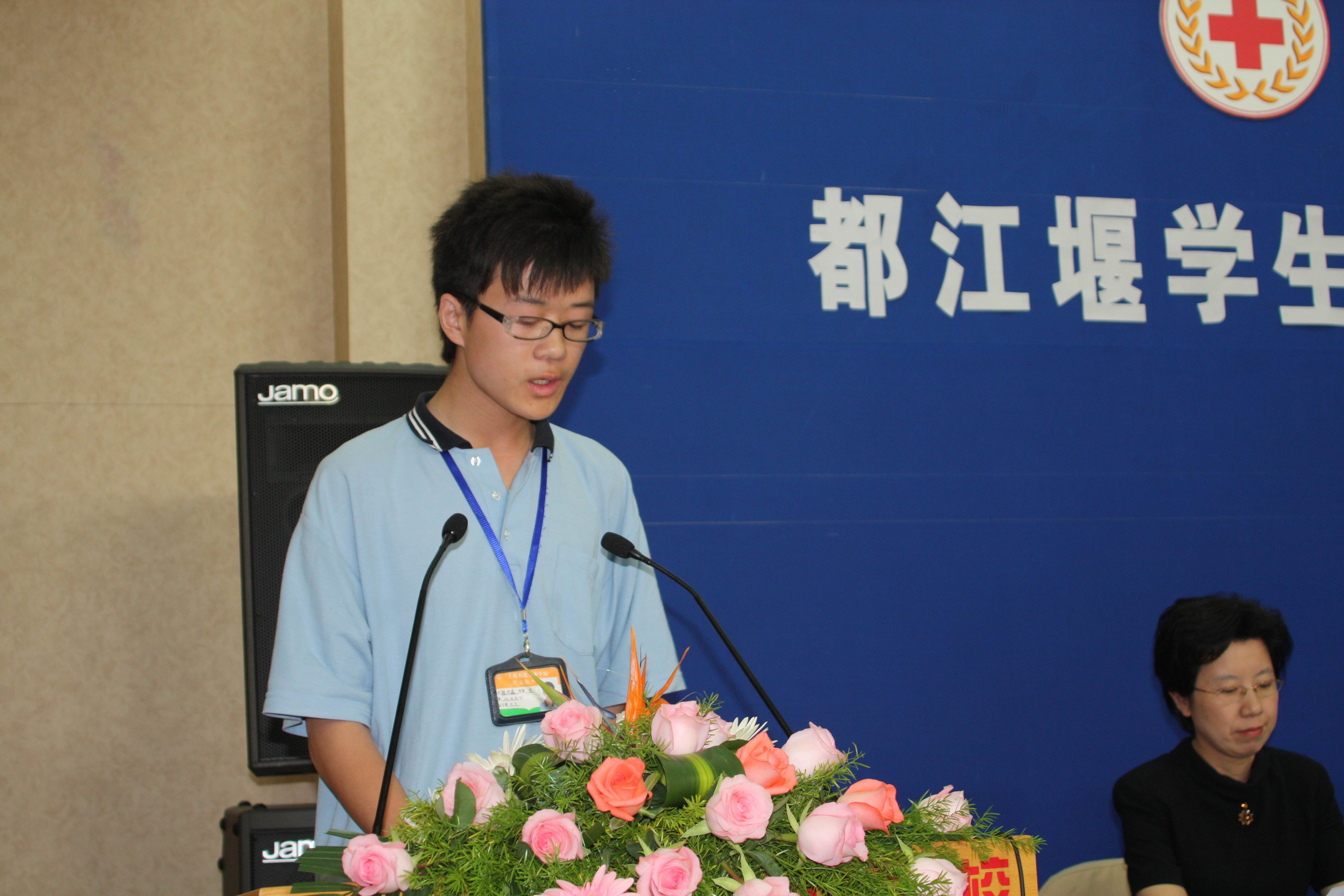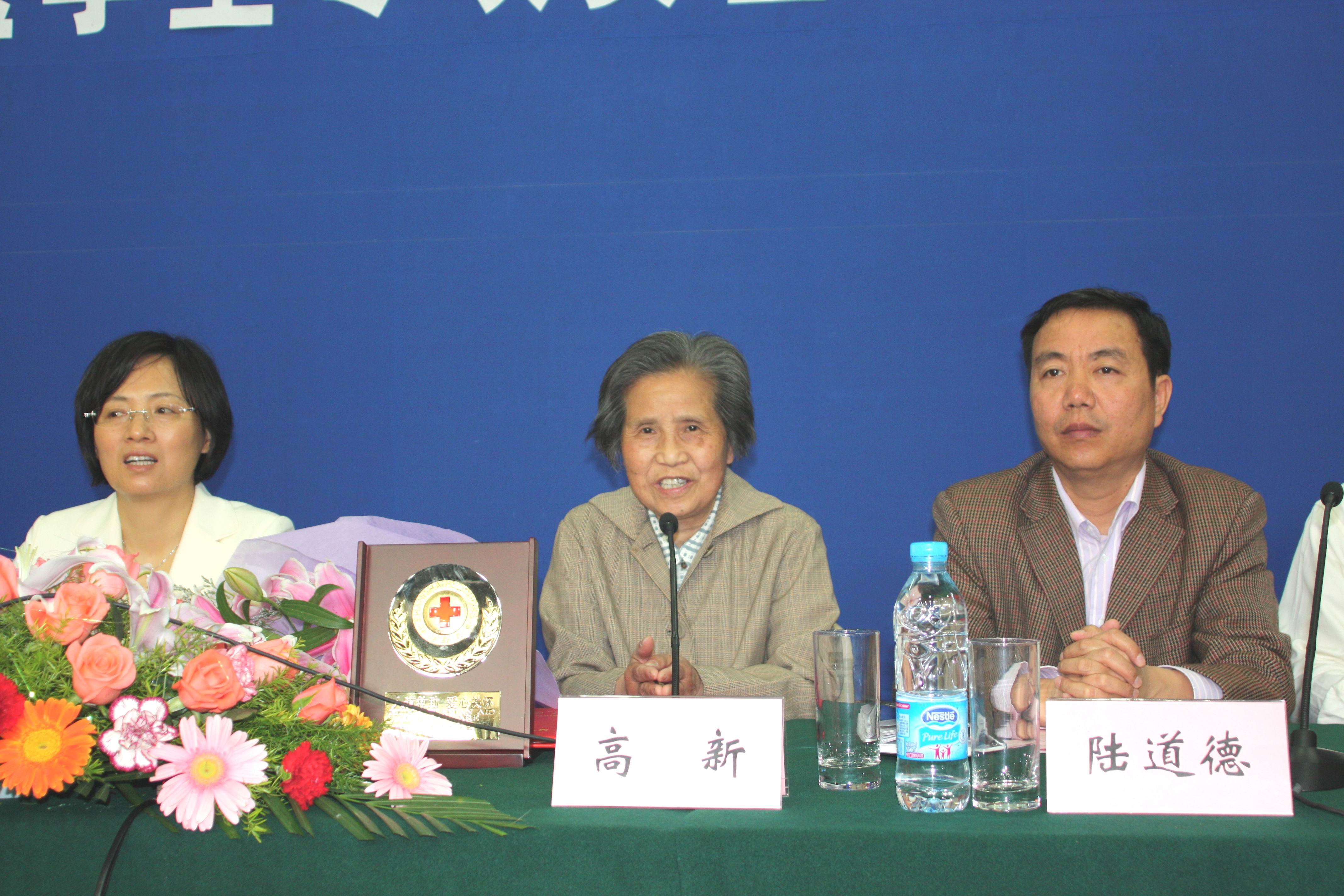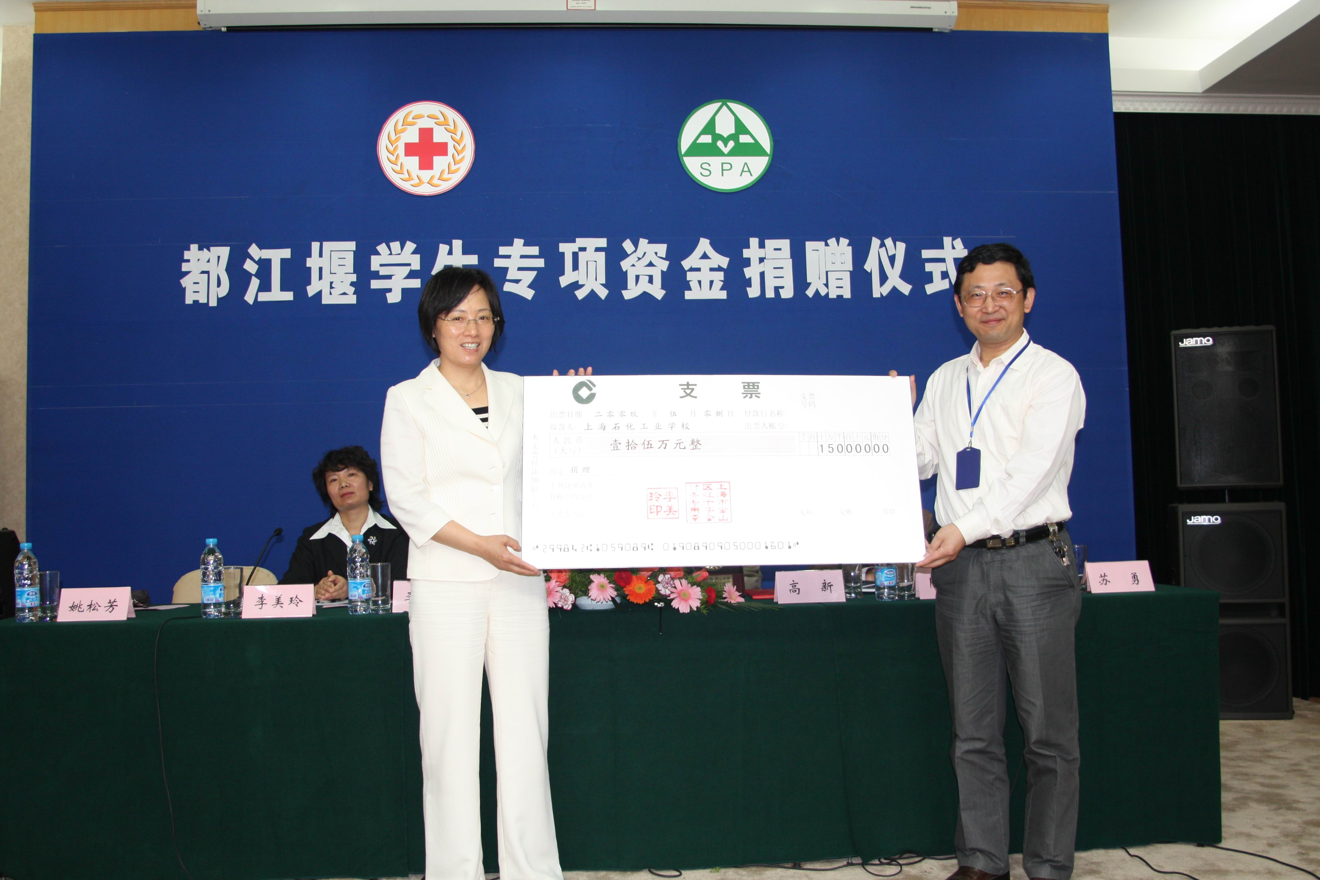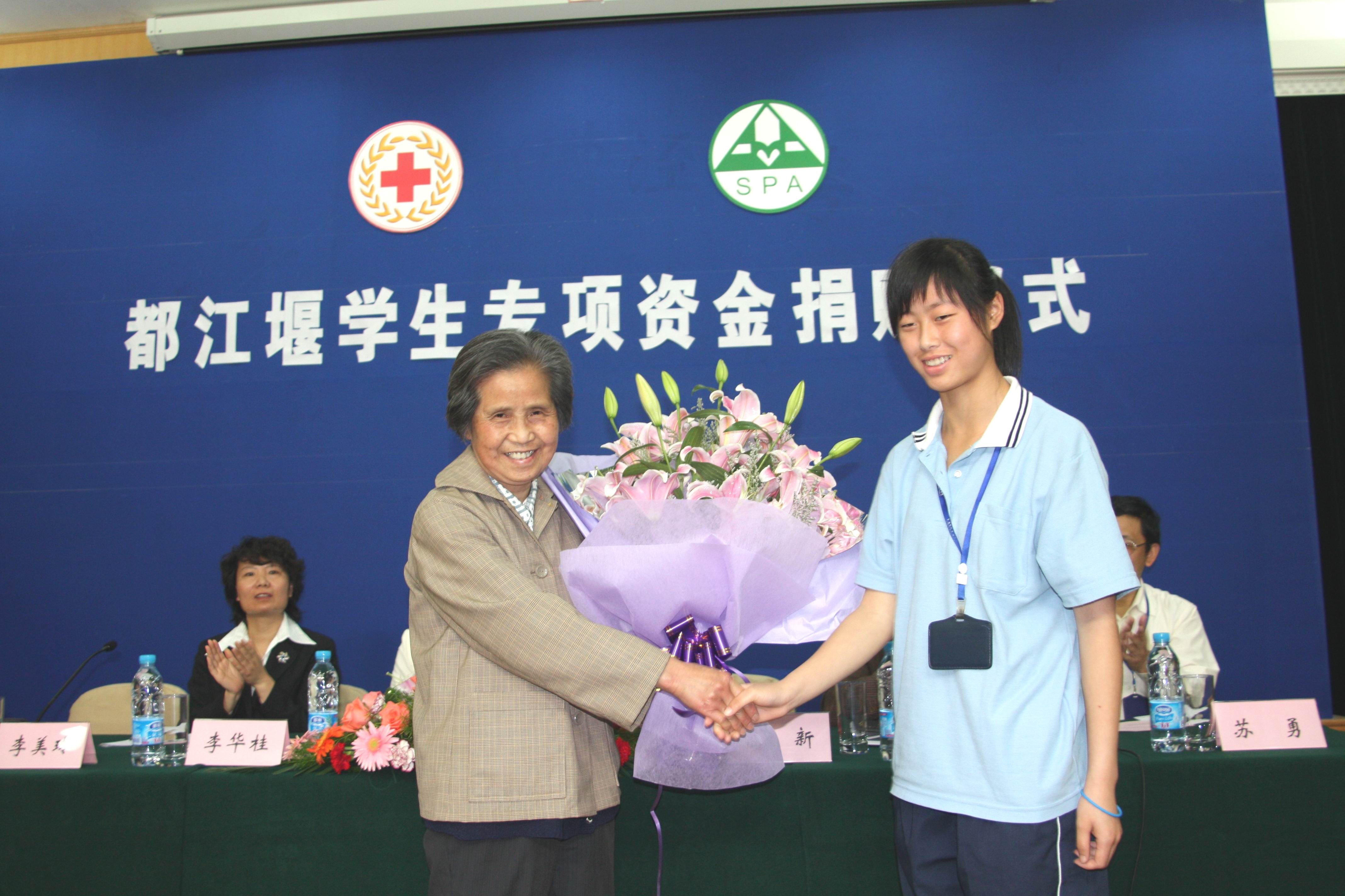 高新老师作为一位已退休多年的人民教师,每月只拿着1000多元的退休工资,至今仍住在石化街道四村的老式一室户公房内,因为节俭,每天的晚饭都是在老人服务社中解决的,仪式当天高新老师穿着的衣服朴素却整洁。15万元对普通人来说也不是一笔可有可无的小数目,在了解了高新老师的具体情况后,更在聆听了高新老师发言后,我们无不感受到她的谦虚与实事求是,她认为她今天做的事,不单单是她一个人的功劳,而是依靠着她的领导,同事和邻居在平日里的照顾与各方面的支持,她只不过是社会各界对都江堰学生爱心的代表。不仅如此,她表示捐出这笔钱款不是一时的冲动,而是有着长远的打算,人应该有多少力量尽多少力量,爱心永远没有量化后的标准,这15万在使学生放下负担的同时,日后也不为社会添麻烦。当都江堰班的学生想到高新老师家为高新老师做点事情时,她说,社会上还有更需要帮助的群体。她对学生的希望是:怀着感恩的心去学习、去成长,强健体魄、学好本领这才是学生的最基本任务。这种强烈的社会责任心,以及博爱、人道、奉献的红十字精神是对于当今社会最好的思想洗涤剂。各位领导发言时,无不表示了今天受到了一次非常好也非常难得的思想教育。苏勇校长表示,首先保证会保管好并用好这笔钱,并将这种奉献精神来鼓舞职工,教育学生。而实际上我校现在也早已经将这一精神落实到了行动中。4月11日我校051化工(6)班周军杰同学,在去企业上班的途中,被逆向行驶的施工车撞倒,周军杰同学家境困难,无力承担数额庞大的医疗费用。我校师生本着人道关怀的精神,共募集资金:教师13775元、学生28223元(其中620元为都江堰班所捐)。
