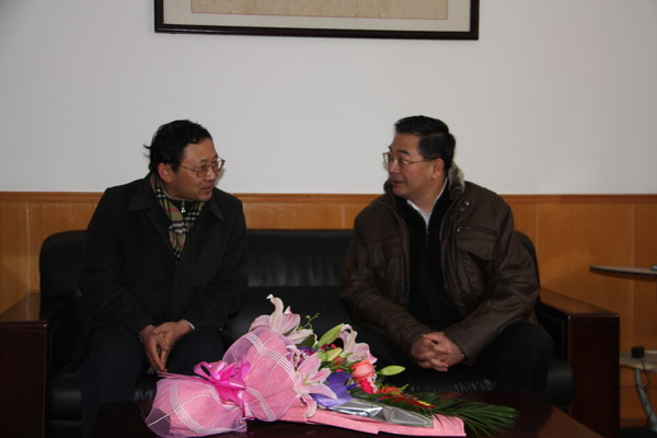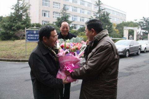 新年伊始,金山区委常委、组织部长陈正安一行,在教育局党委书记孙秀强和教育局党委办公室主任平英的陪同下,冒着严寒,于1月8日下午2:30许前来我校慰问金山区领军人才、校长苏勇。校党委书记姚松芳参加了接待.