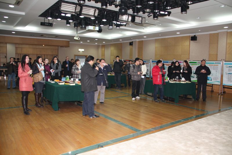 半小时之后,苏校长等领导带领媒体朋友们来到北校区的B区多功能厅。为了让媒体朋友们感受轻松氛围,学校事先把B区多功能厅布置成开放式的酒会形式。媒体朋友们一边通过多功能厅两边的学校概况、拜耳杯技能竞赛等主题展板、海报了解学校及我校与拜耳的合作,一边品尝水果点心,同时苏校长和林晔经理也分别通过PPT和视频的形式从学校、企业的角度回顾了我校与拜耳的合作历程。介绍过程中,媒体朋友聚精会神地看着PPT和视频中的文字与图片资料,有的拿出录音笔,有的拿出相机记录下珍贵的资料。通过参观拜耳实训基地以及苏校长和林经理的介绍,来访的媒体朋友对我校的校企合作有了较为全面的了解,也表示如此有效的合作模式值得报道和推广。