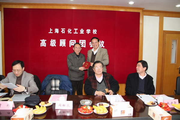 其它高级顾问们围绕着重点议题,也发表了一些可贵的建议。根据工作需求,会上,秘书长周耘农向上海化学工业区管委会副巡视员谈学良颁发了聘书,代表学校聘任他为学校的高级顾问。