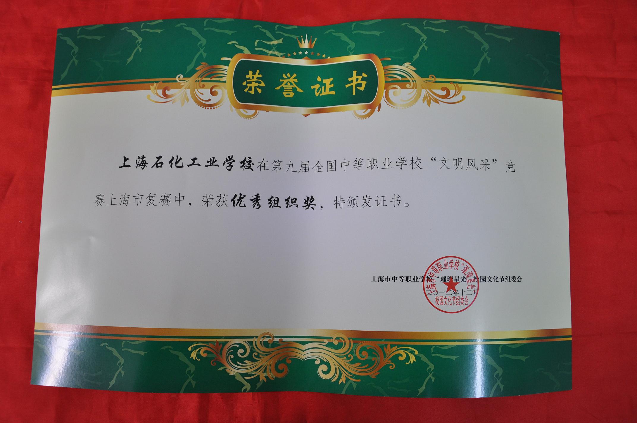 学校荣获上海赛区第九届中等职业学校“文明风采”活动优秀组织奖。