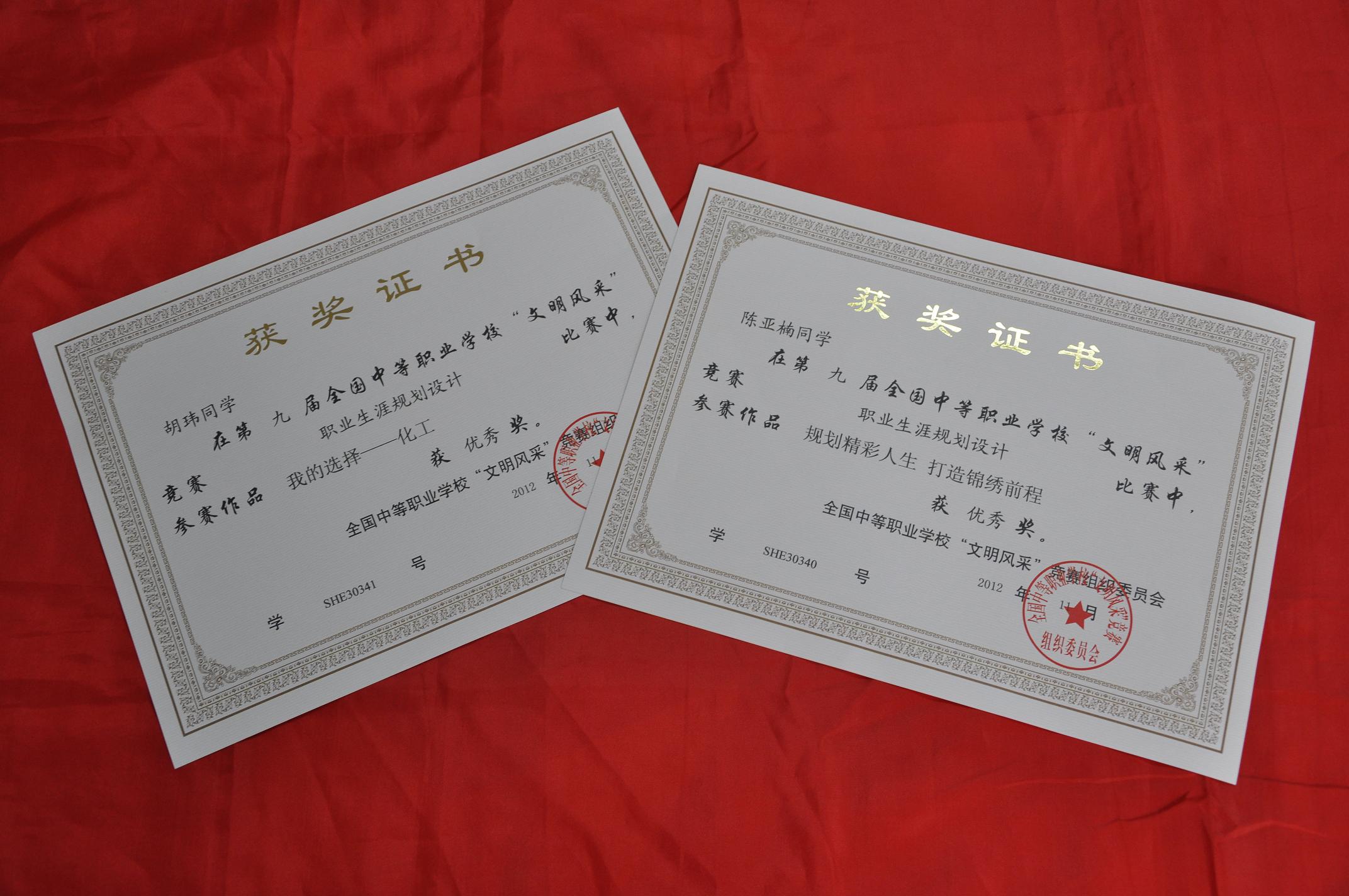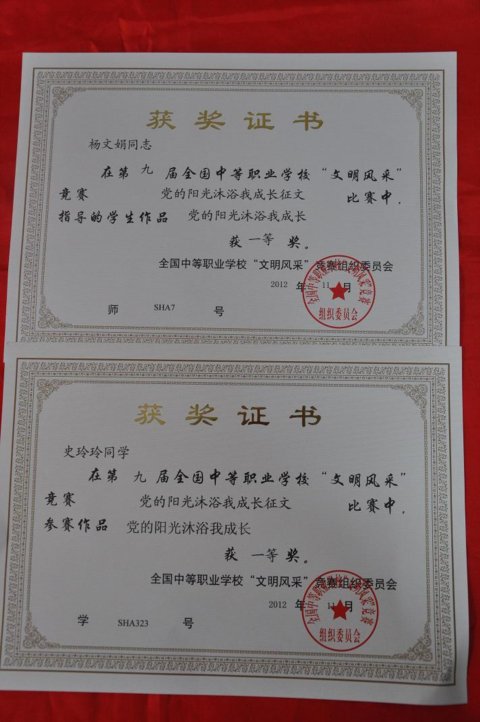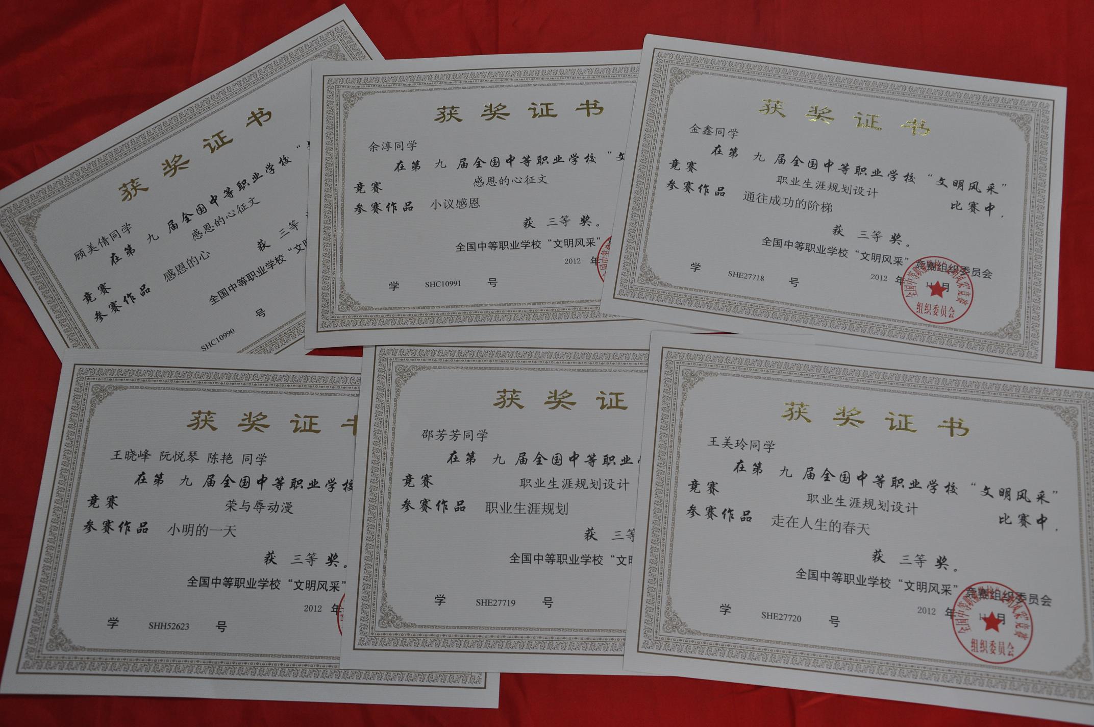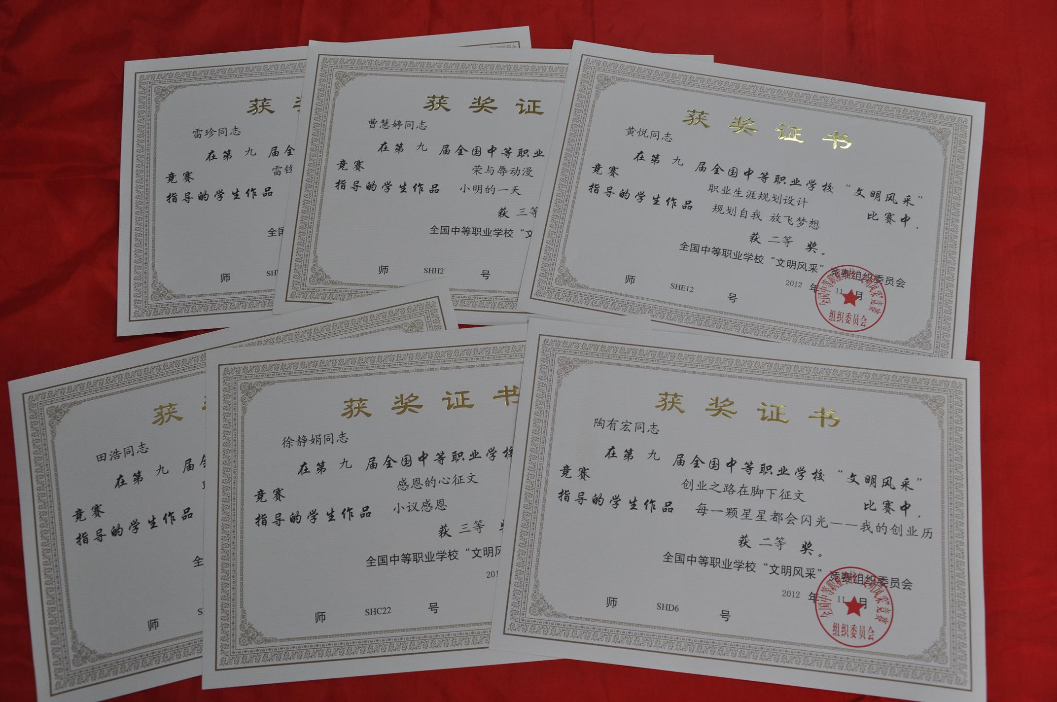 我校参加第九届全国中等职业学校“文明风采”活动全国获奖名单: