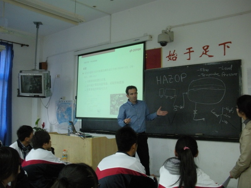 新学期的第三周3月12日,西萨化工的生产经理Mr.Manuel Pedraza Valiente及工艺工程师Miss Julia Guo在人事专员Elaine Huang及校办杜海燕、田娟老师的陪同下,来到拜耳西萨班,为我们上了一堂别具特色的化工装置运行技术课。