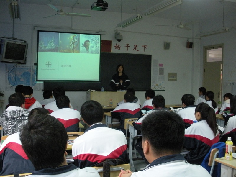 2013年3月13日下午3时,来自拜耳HR部门的Jessie Tang女士在校办田娟老师的陪同下,再一次和拜耳西萨班的同学们一起度过了主题为《走进拜耳》的班会课。