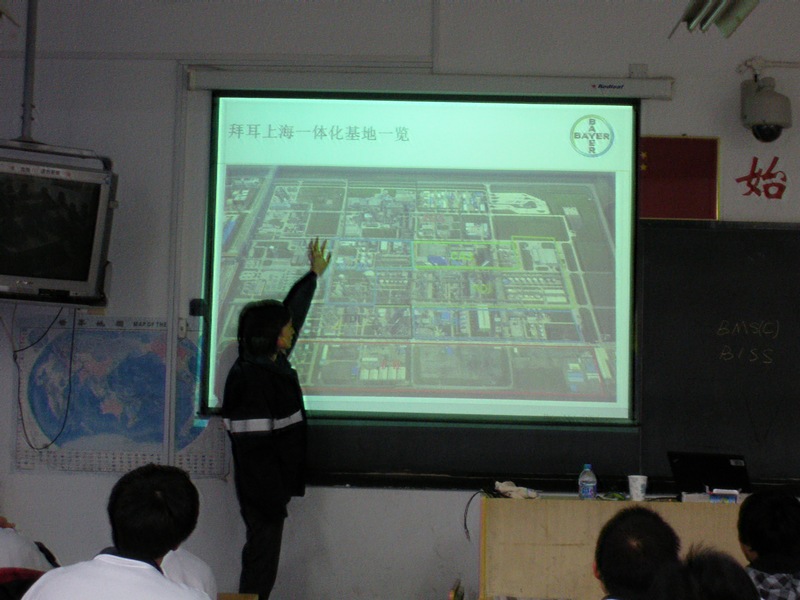 班会课一开始,Jessie就把拜耳一体化基地的内刊“InSite”发给我们,让我们近距离地体会拜耳员工的工作与生活,让我们感觉到在不久的将来内刊中也可能会出现我们的身影。接着,Jessie进入了本次班会课的正题――走进拜耳。她给我们带来了拜耳集团的整体介绍,内容包括拜耳的历史、拜耳集团整体的结构和产业分布情况及员工情况等等。Jessie在介绍中着重提到了拜耳对于“人”的重视,不仅仅是员工的安全,还有员工的生活,员工的培训等等都有详细的规程安排,让我们感觉拜耳对我们更加亲切了。最后,Jessie用拜耳集团的价值观和领导原则为此次的介绍画上了句号:LIFE Leadership领导,Integrity正直,Flexibility灵活,Efficiency 效率。这套价值观将贯穿我们整个集体,也会指导我们如何真正融入拜耳的企业文化。开心的时光总是过的这么快,同学们依依不舍地送走了Jessie老师。