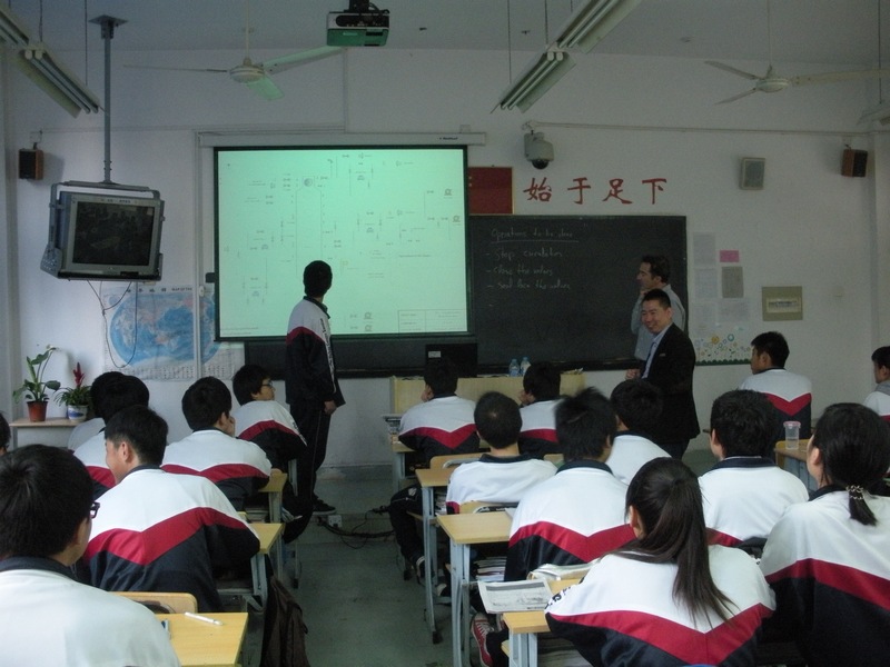 开学第四周星期二3月19日,西萨化工的生产经理Mr.Manuel Pedraza Valiente及工艺工程师李真先生在人事专员Elaine Huang及校办杜海燕、田娟老师的陪同下,来到了拜耳西萨班,再次为我们上了一堂精彩的化工装置运行技术课。