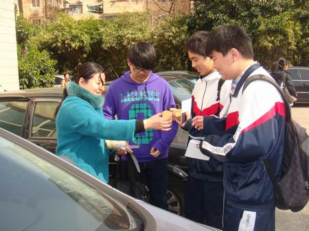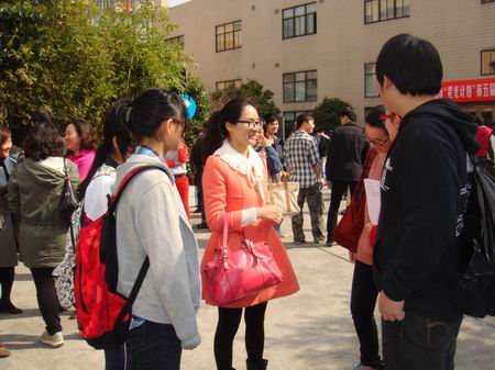 比赛开始前,赛场外随处可见我校师生的身影。其中,一位穿蓝色大衣的女教师吸引了我们的眼球。她就是我校数控教研组的沈俊英老师,她今年已经不是第一次带“星光计划”了,作为一名资深的星级指导教师,她培养了几届星光计划获奖选手。此时,她手里拿着刚刚买好的珍珠奶茶和精美蛋糕,一边递给自己的爱徒,一边仔细叮咛:“别紧张、正常发挥就好。”凝神望去,她的弟子中就有一位上届计算机操作项目一等奖获奖选手钱晓波,第二次参赛的他一边接过老师的爱心糕点,一边笑嘻嘻的往嘴里塞,在他的脸上看不出丝毫紧张,他淡定地说:“经过比赛前的这一段高强度训练,我对自己的水平已经胸有成熟了,比赛时认真发挥就好。沈老师就像我们的妈妈一样,对我们关怀备至。她和数控项目组的其他指导教师一起,为我们付出了很多,真心谢谢老师们。”几句朴实的话语道出了一段浓浓的师生情,也许“星光计划”已经超出了比赛本身,更是一种人性光辉的体现。