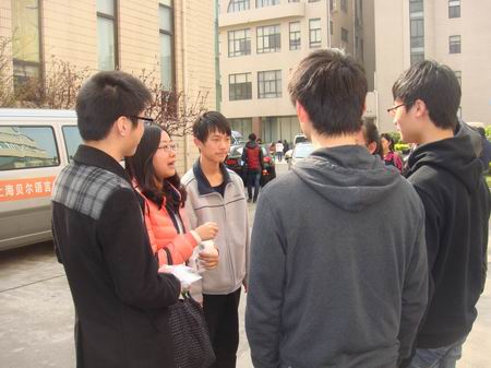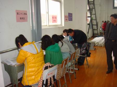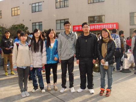 乘载着我校选手的校车在高速上一路飞驰,一个小时过去了,不同的参赛队伍分别来到了位于市区的各中职学校,以及上海市职业技能鉴定中心等指定考点。坐在候考区内,选手们放下书包,有的掏出复习资料进行最后的突击,有的和指导教师探讨,有的和同伴们说笑来排遣紧张的情绪。
