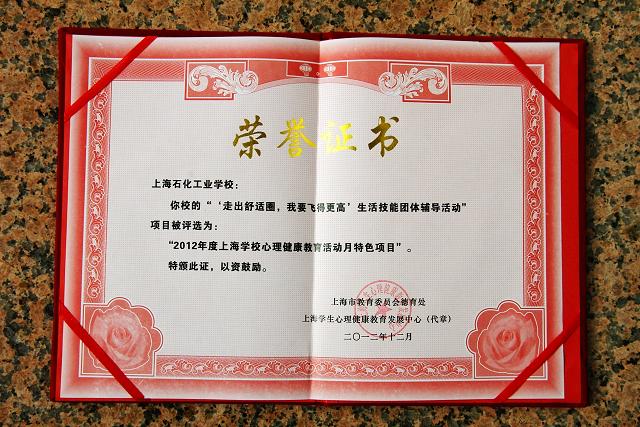 近日,我校心理工作传来喜讯,我校获得“2012年度上海学校心理健康教育活动月” 特色项目奖。