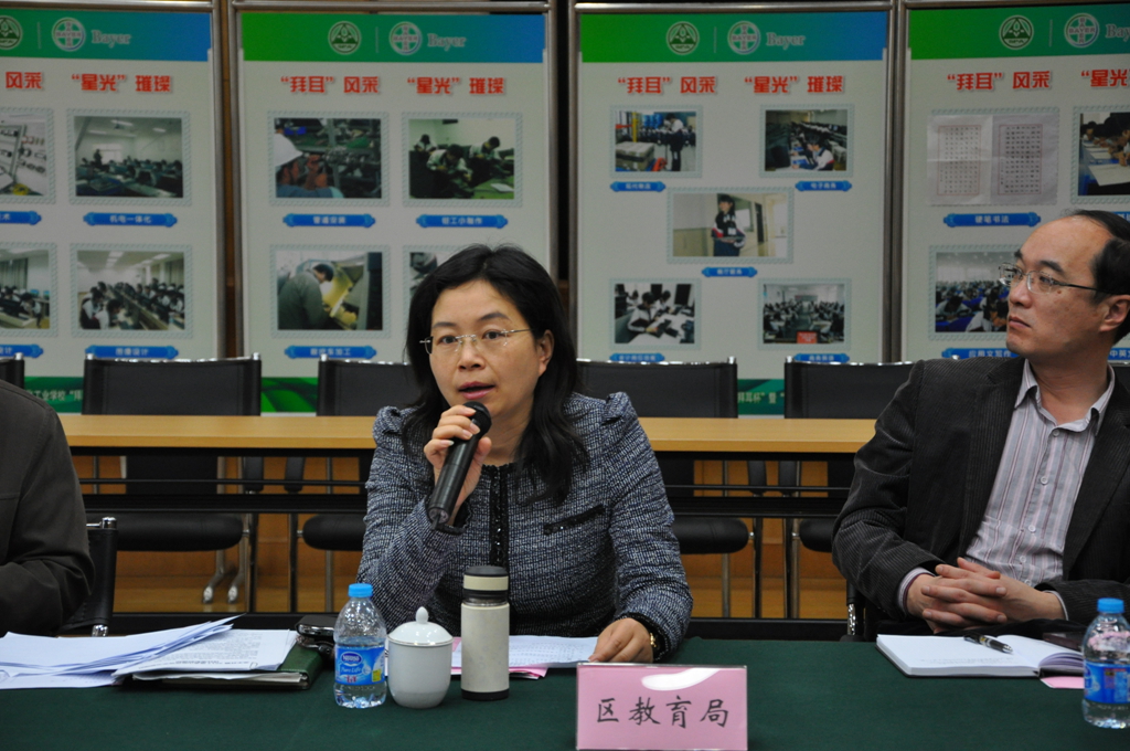 郑瑛副局长就召开本次研讨会的背景和初衷向大家作了介绍。我区正在深入创建创业型城区建设,金山区教育局积极配合,实施“以人才促创新,以创新促创业”战略,积极引导金山区中等职业学校学生开展创业知识方面的教育和培训,普及创业基本知识,提高学生的动手能力和参与实践的能力,激发学生创业的灵感,在相关部门,特别是区妇联的大力支持下,在区女企业家协会各位老总的全力支持和帮助下,学校也有了将近一年的学生创业教育的实践。本次研讨会主要是为学校的创业实践园解决一些实际的困难并提供政策上的帮助。