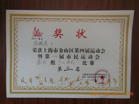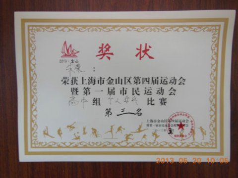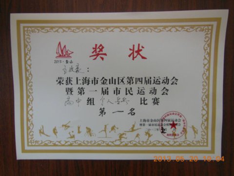 我校乒乓球运动队参加了上海市金山区第四届运动会暨第一届市民运动会乒乓球高中组的团体和个人的比赛,在学生处迮老师的带领下,在教练员徐老师和袁老师的指导下,同学们的共同努力下,取得了团体第三和男子个人第一和第三,女子个人第三和第六的好成绩。 `