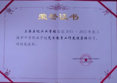 在学校领导的大力支持下,近日我校荣获由上海市中等职业学校艺术教育专业委员会颁发的“2011~2012”年度上海市中等职业学校艺术教育工作先进集体称号。