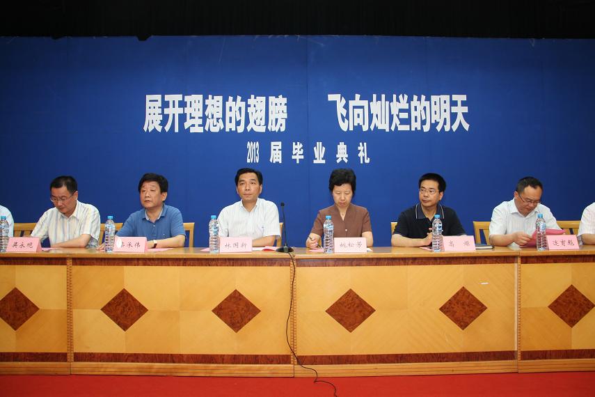 上海石化工业学校2013届毕业典礼暨实习总结于2013年6月26日上午9:30在学校北区B区报告厅隆重举行。校党委书记姚松芳、副校长林国新、高炬、教务处主任栾承伟、学生处主任迮育彪、总务处主任吴永观、化工科科长沈晨阳、机电科支部书记孙曙光、经贸科科长贾佩新等领导出席了大会。